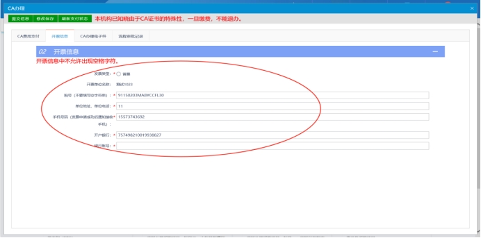 (二)填写好基本的办理信息,开票信息,电子件上传