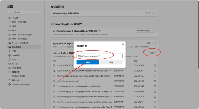(四)点击添加,再输入复制的网址再点击添加