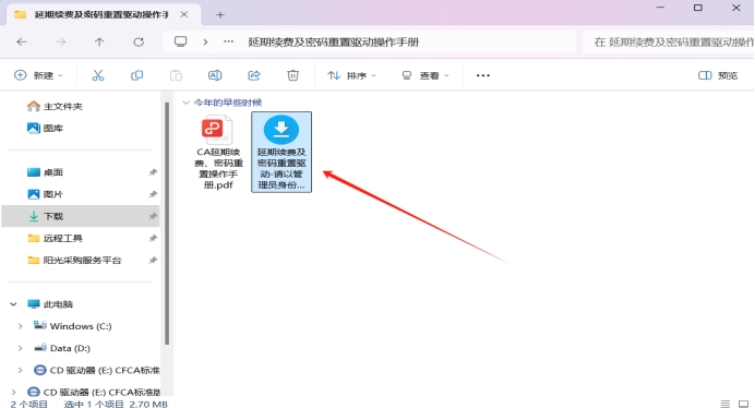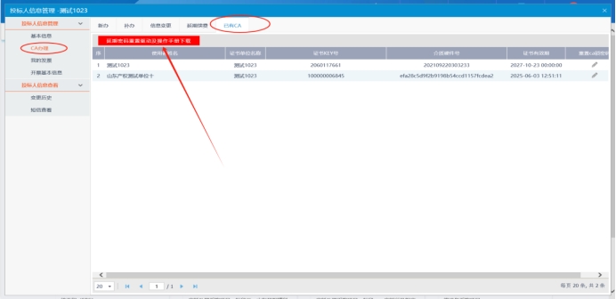 (一)首先登入系统点击单位信息,点击CA办理选择已有CA,点击延期密码驱动下载按钮下载压缩文件