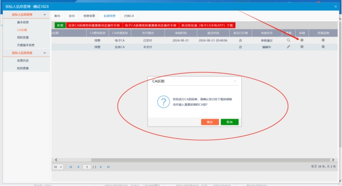 (六)之后再登录系统点击延期,收入CA密码即可