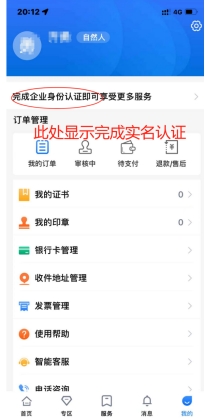 3. 如果之前在其他平台有使用过标证通APP,下面手机端就不用操作了,如果未在其他平台使用过标证通APP,点击个人中心实名认证选择支付宝认证即可,暂时结束