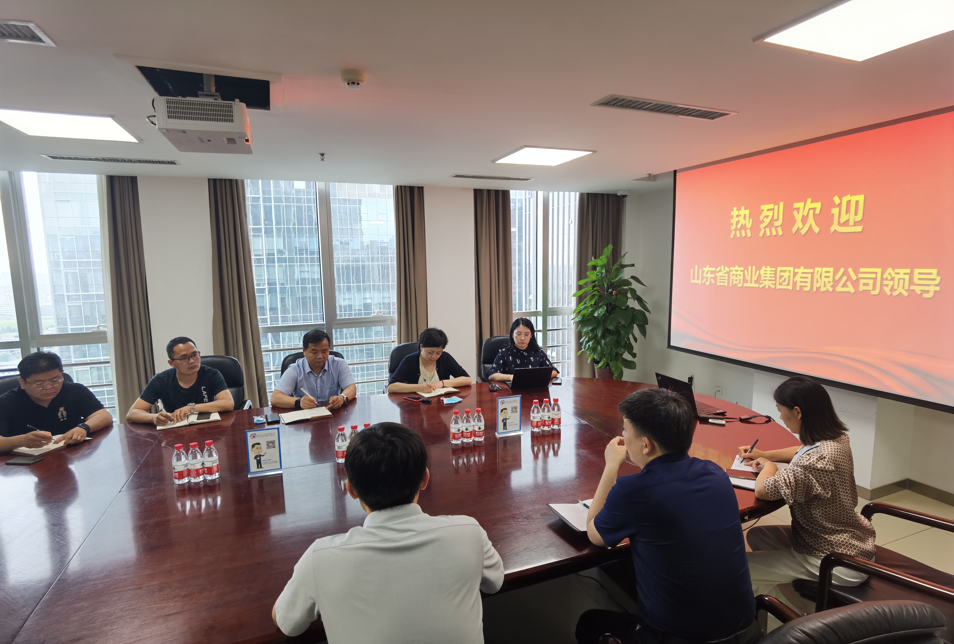 6月28日,鲁商集团招标中心主任董建民一行到访阳光采购服务公司,就阳光采购服务平台合作事宜进行座谈。山东产权集团平台发展中心总经理白洁,阳光采购服务公司董事长、总经理姚洋等热情接待来访客人。
